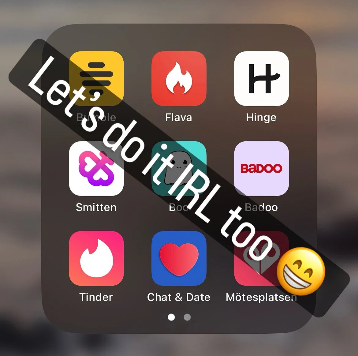 Jag tror på riktiga möten! Appar i all ära, men det är lätt att hamna i swipingträsket och vi ser varandra som ännu en annons att scrolla bort. Dopaminnivån ökar dessutom utifrån de likes vi får. I själva verket kan vi ju faktiskt inte gifta oss med alla personerna bakom liken och det blir svårt att hålla uppe levande konversationer med alltför många personer.